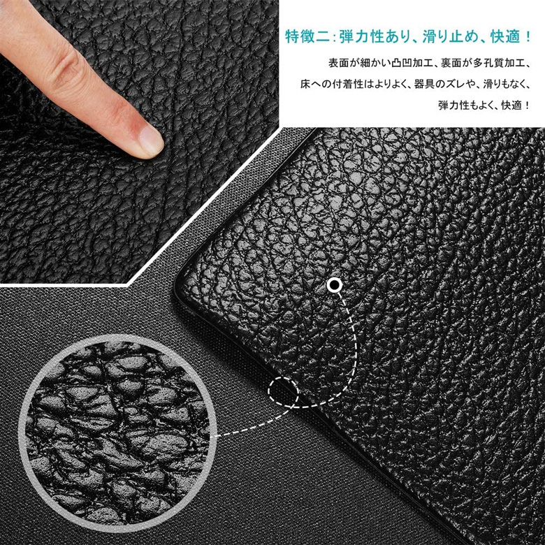 軟質PVC素材が運動機器をしっかり固定、床面への衝撃やキズを軽減します。静音性や床面の保護、マシンの滑り止め・衝撃の吸収をしてくれるフロアマット。また表面は細やかな凹凸加工により滑りにくく、裏面は粘度がない素材で床に粘着物がつく心配がありません。トランポリン用に設計されておりますが、 懸垂マシンや腹筋ベンチなどのトレーニング・フィットネス器具にもご使用いただけます。